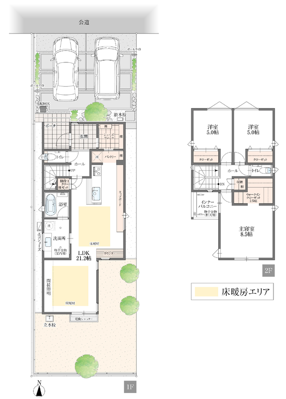 | 駐車場 | 2台(駐車2台) | 道路の幅員 | 東9m 北6m |