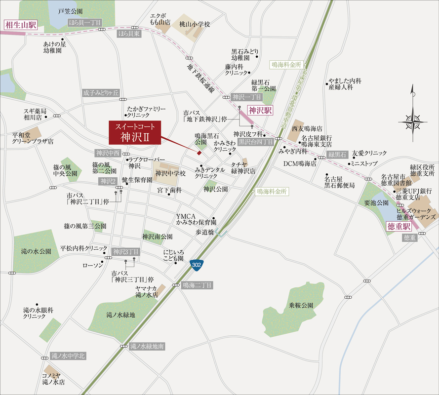 名古屋市営桜通線「神沢」駅 徒歩6分 市バス「地下鉄神沢」停(西) 徒歩6分 |