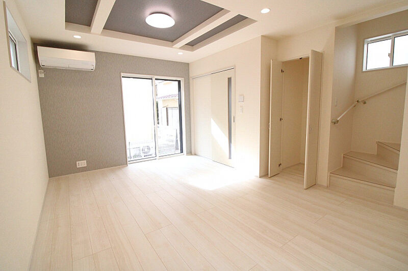 天井が高く、開放感のある室内空間を実現。南向きの掃き出し窓もあ...