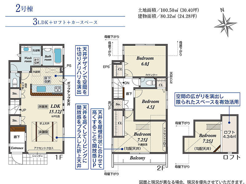 | 建物面積 | 80.32m2(約24.29坪)~85.08m2(約25.73坪) | 土地面積 | 101.15m2(約30.59坪)~106.95m2(約32.35坪) |