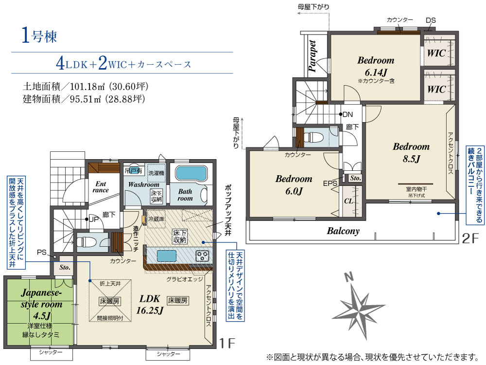 | 建物面積 | 95.51m2(約28.89坪) | 土地面積 | 101.18m2(約30.60坪) |