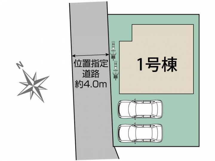 | 駐車場 | 2台 | 道路の幅員 | 西4.0m位置指定道路 |