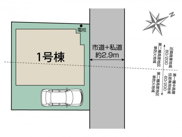 | 駐車場 | 1台 | 道路の幅員 | 北2.9m市道+私道 |