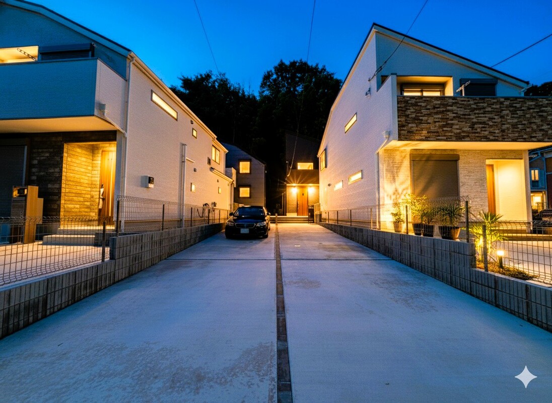 | 備考 | ※:掲載の写真は、日中に撮影した実際の建物を基に、AI画像生成技術を用いて夜間のライトアップ、植栽、車両等をCG加工したものです。実際の見え方とは異なり、またCGで追加された照明、植栽、自動車等は販売価格に含まれません。 | ||