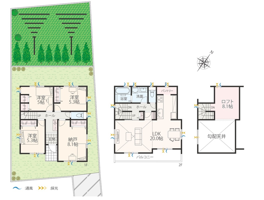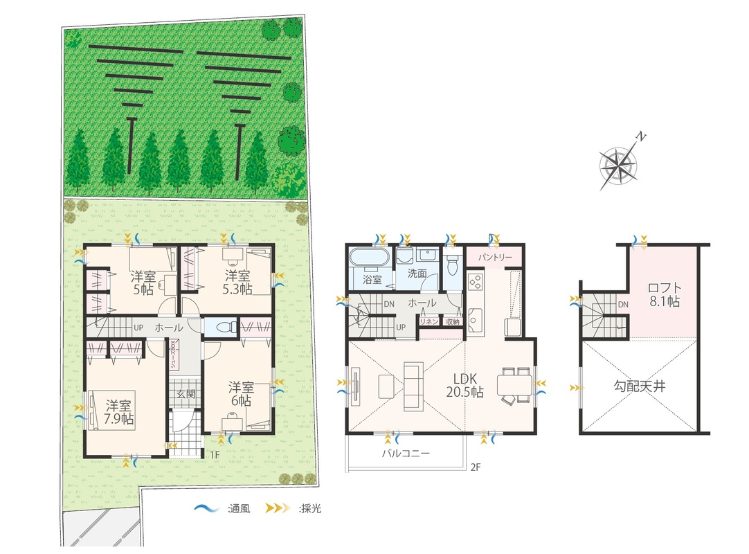 - ※完成予想図やCG合成画像は、門塀・植栽・庭・外観等、実際とは多少異なる場合があります。
