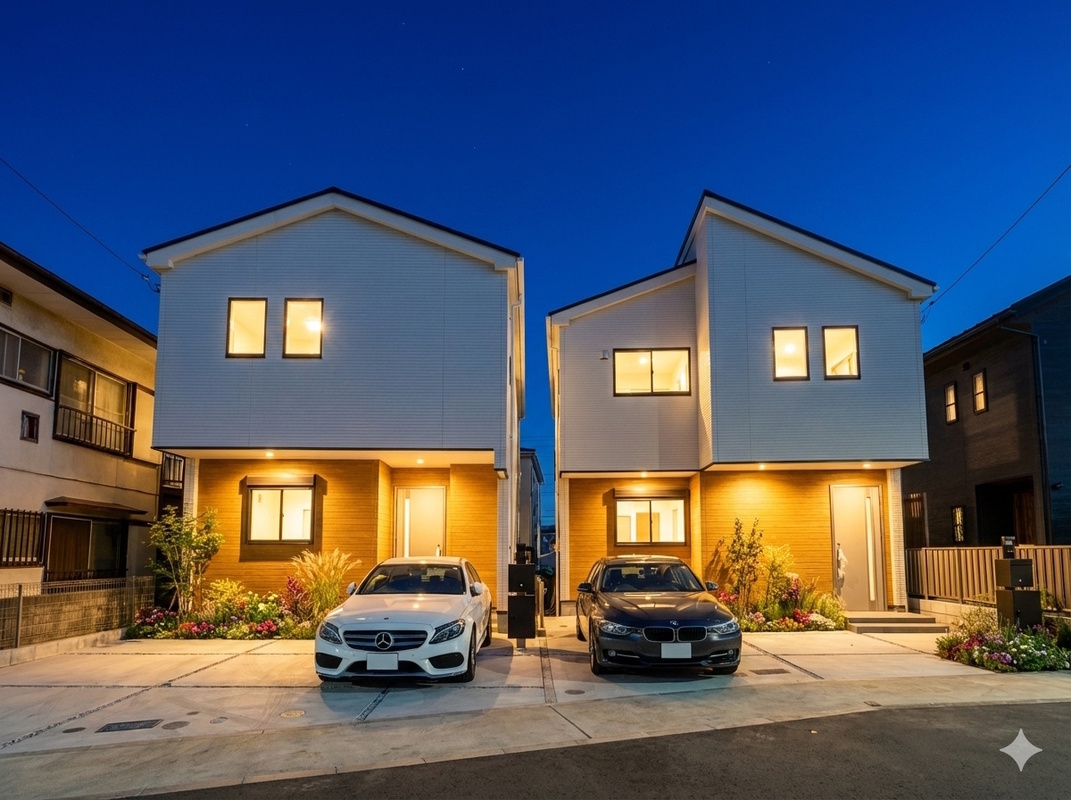 ※1日中に撮影した実際の建物を基に、AI画像生成技術を用いて夜間のライトアップ、植栽等をCG加工したものです。実際の見え方とは異なり、またCGで追加された照明、植栽等は販売価格に含まれません。: ※2:本画像はCGで作成しており、実際に現地に家具は置かれておりません。また、価格に家具は含まれておりません。 |
