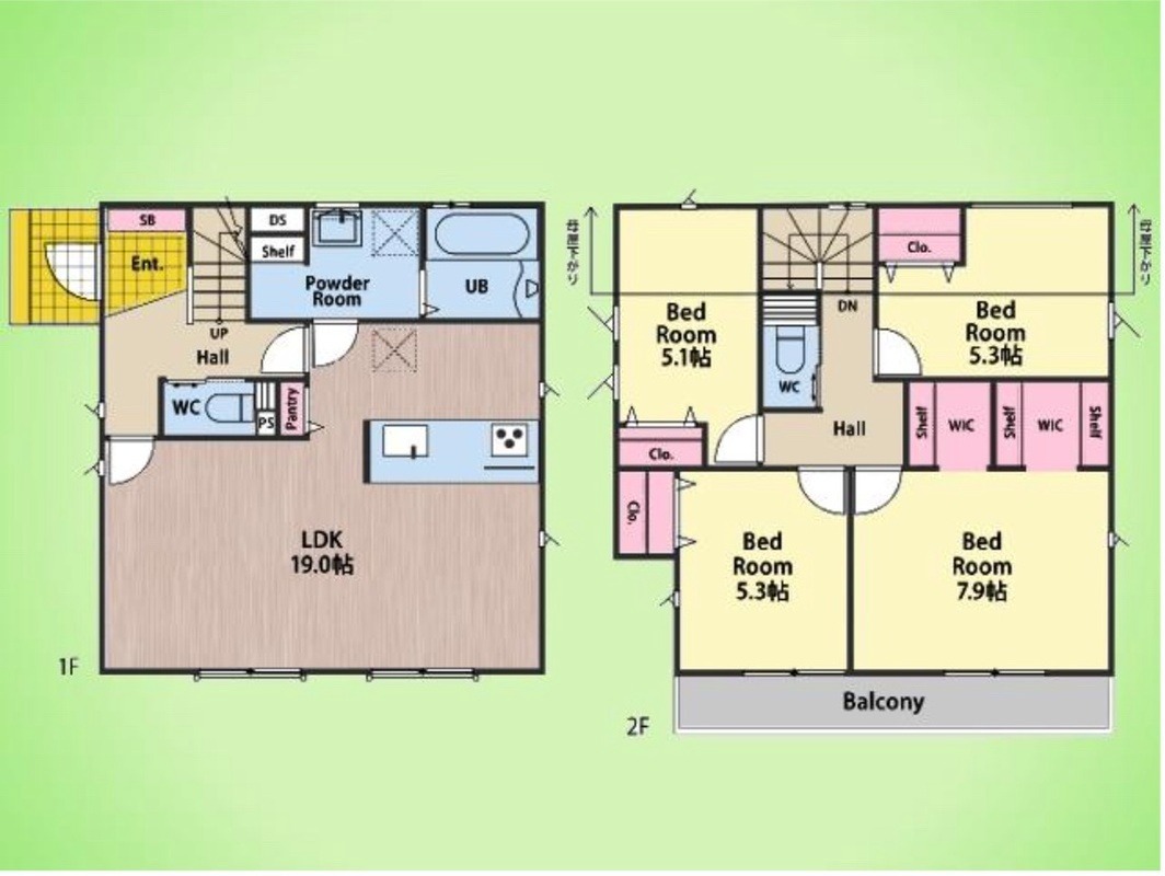 2号棟 間取り 4LDK 価格 3990万円 建物面積 109.09m2 土地面積 196.47m2 -