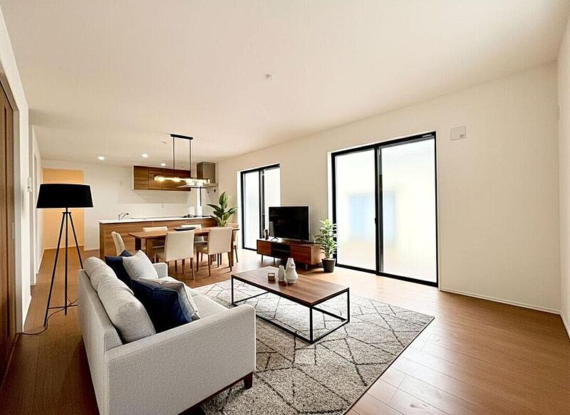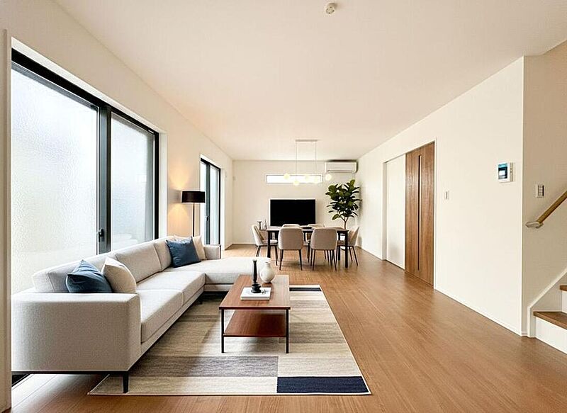 ・たくさんの陽光が入る22帖のゆとりあるリビング