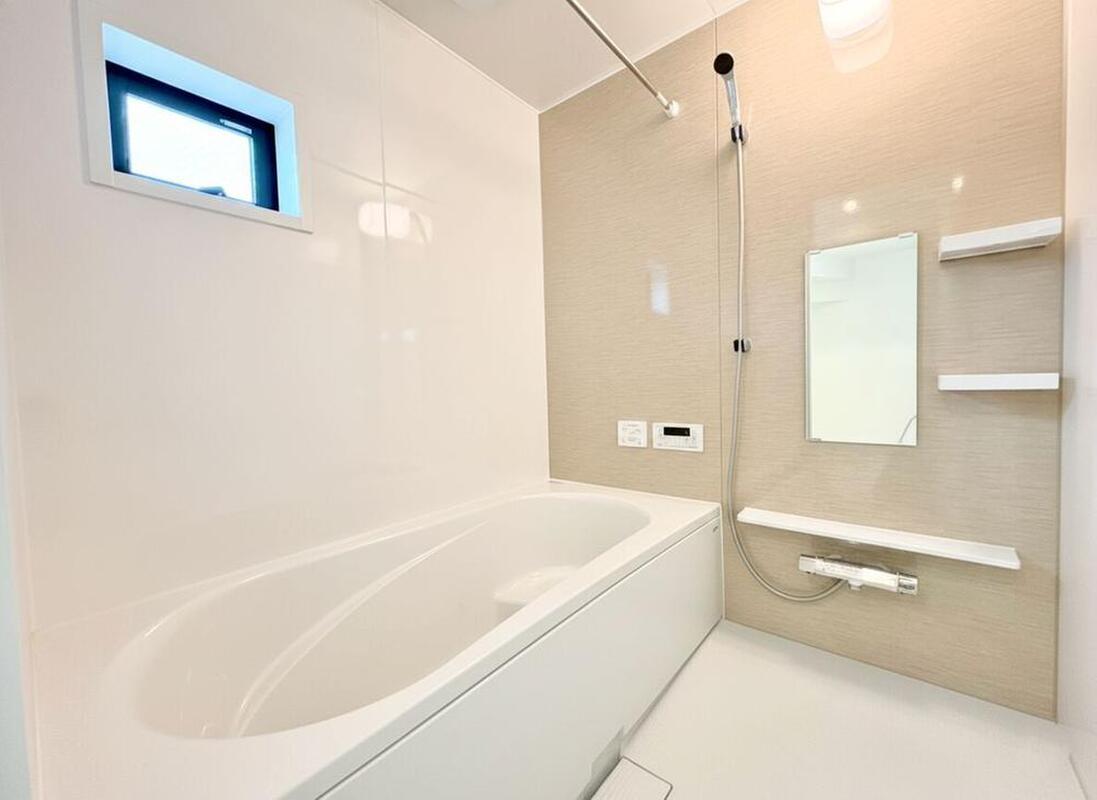 雨の日のお洗濯に便利な浴室乾燥機付きのバスルーム。浴室に窓があるので、換気にも便利。