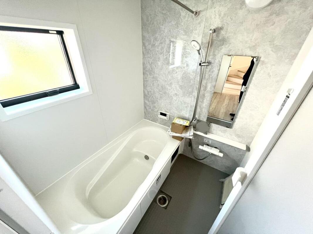 浴室乾燥機付きで、雨の日でも洗濯物が干せる快適なバスルームです。