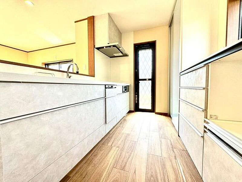 収納量豊富なシステムキッチンには食洗機が付いています。