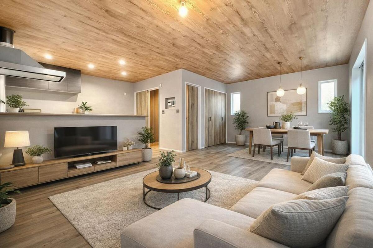 ●LDK20畳以上 !木の温もりが溶け込む、贅沢なリビング。