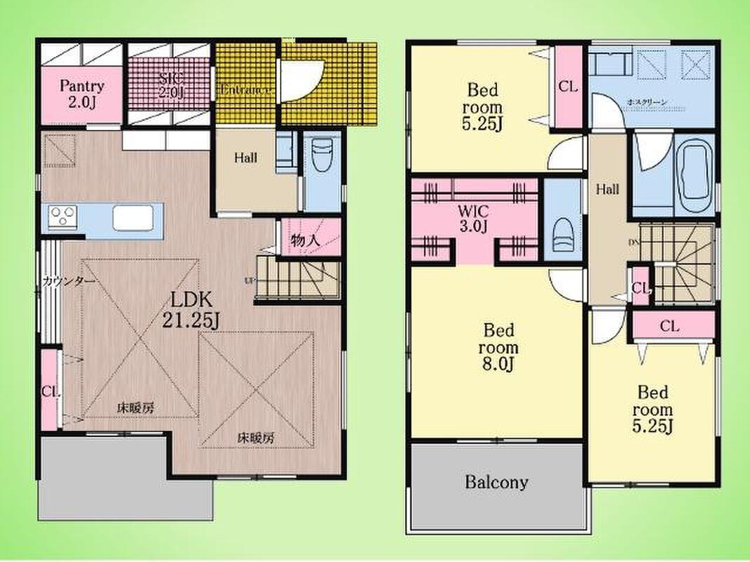 新築一戸建て 21帖の開放感に、家族の笑顔が広がる。床暖房が包む、陽だまりの大空間。