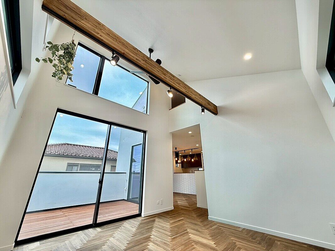 空と繋がる21.1帖の大空間。吹抜けと大型バルコニーが日常を解放する家。