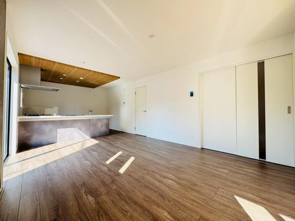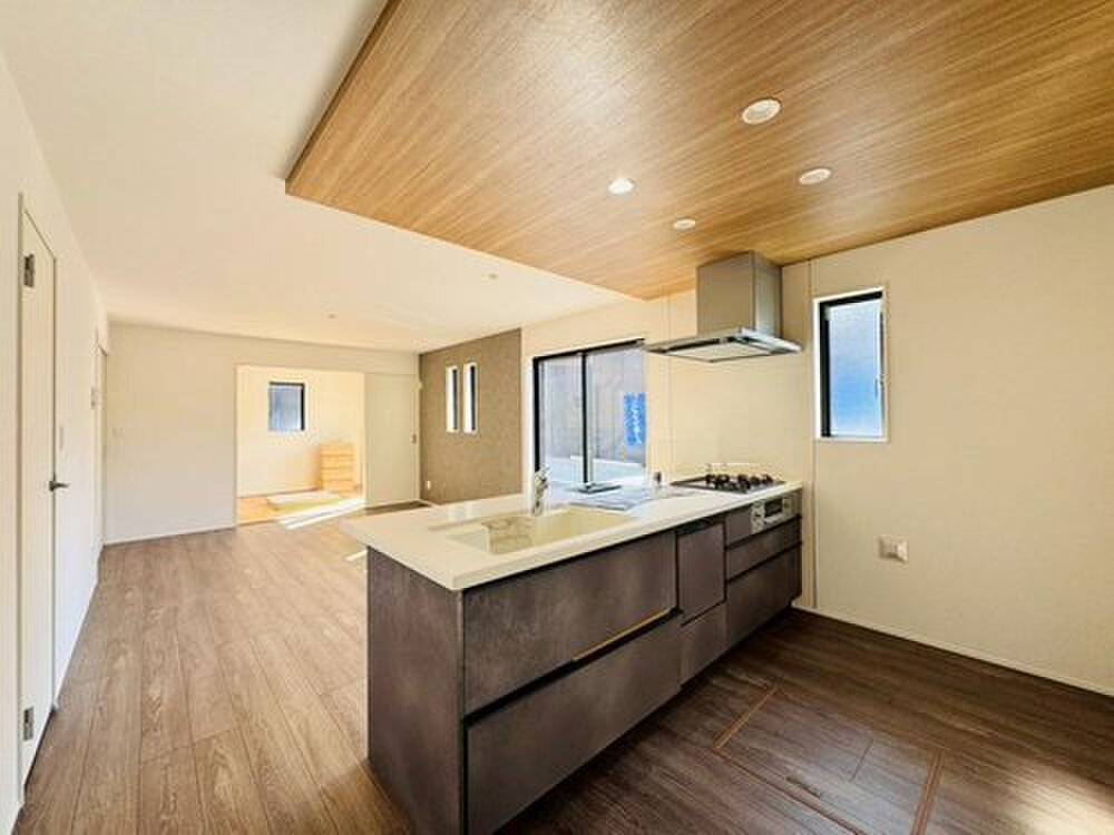 □キッチンは折り下げ天井を採用し、洗練された印象のインテリア。
