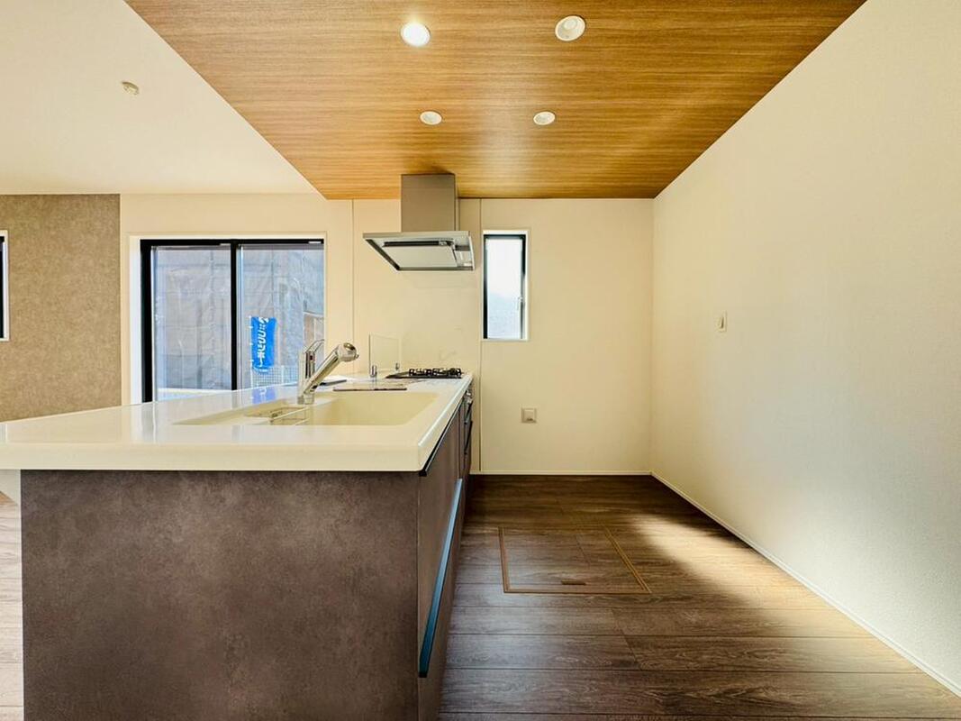 使い勝手の良いシステムキッチンを完備。調理スペースも広く、家事動線を考えた設計で、家族みんなが快適に過ごせます。