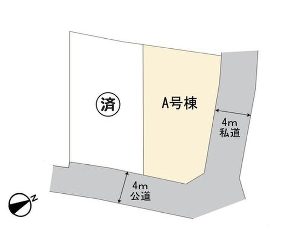 | 駐車場 | - | 道路の幅員 | 道路幅:4m、アスファルト舗装、接道:4m 南東公道、北東私道 私道負担:111.m2×1/5 |