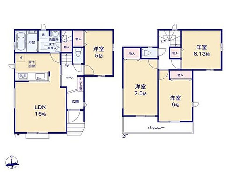 1階にも洋室がある便利な4LDK!南向きの15帖LDK、人気の対面キッチン、各階トイレなど暮らしやすい工夫が満載。全居室収納で、家族みんなが快適に過ごせる家です。