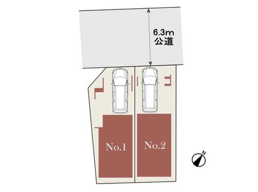 | 駐車場 | 1台 | 道路の幅員 | 道路幅:6.3m、アスファルト舗装、接道:6.30m 北西公道 |