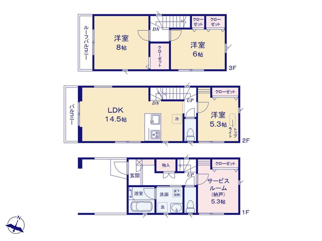 | 間取り | 3LDK+S(納戸) | 建物構造 | 地上3階 木造 |