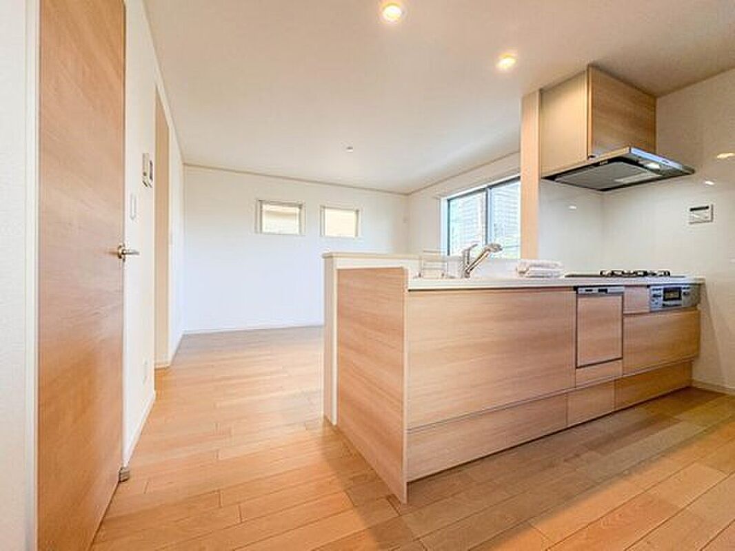 ナチュラルな自然光の中での調理。会話が弾む対面型キッチン。お洒落な食器類を余裕で収納できるスペース。動きやすい女性目線のキッチン動線。これからはお料理をつくる時間が劇的に変わります。