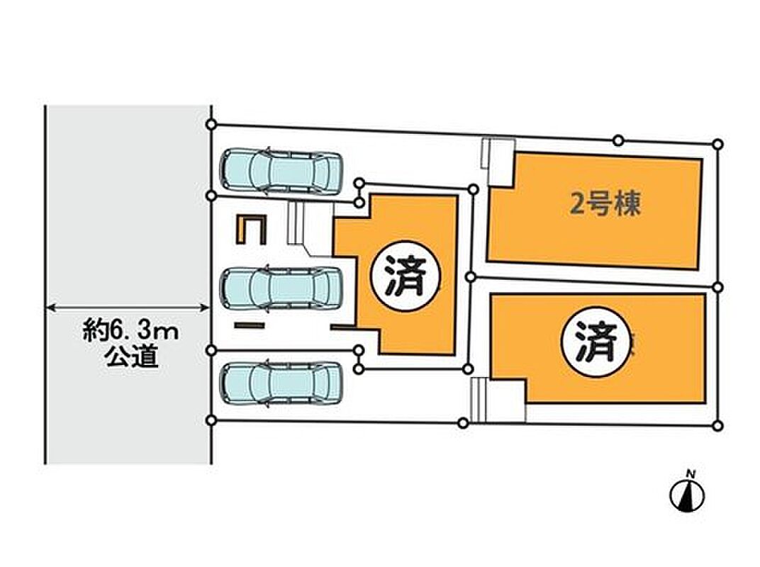 | 駐車場 | 1台 | 道路の幅員 | 道路幅:6.3m、アスファルト舗装、接道:6.30m 西公道 路地状部分面積:25平米 |