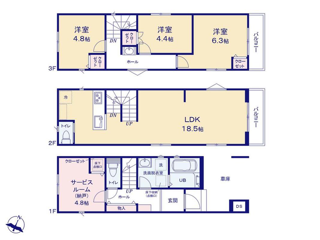 | 間取り | 3LDK+S(納戸) | 建物構造 | 地上3階 木造 |