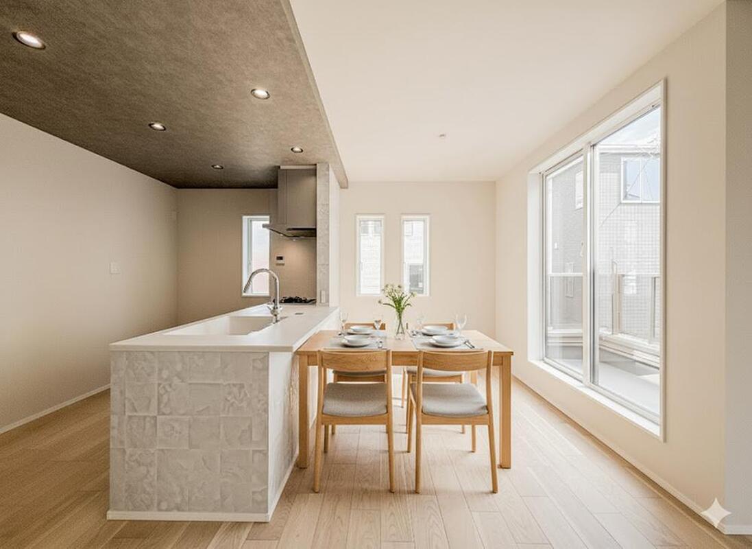 リビングにいるお子様と会話をしながら家事ができるカウンターキッチン。いま手があいているか、忙しそうなのか相手の様子を伺いながらコミュニケーションをとる訓練にもなります。