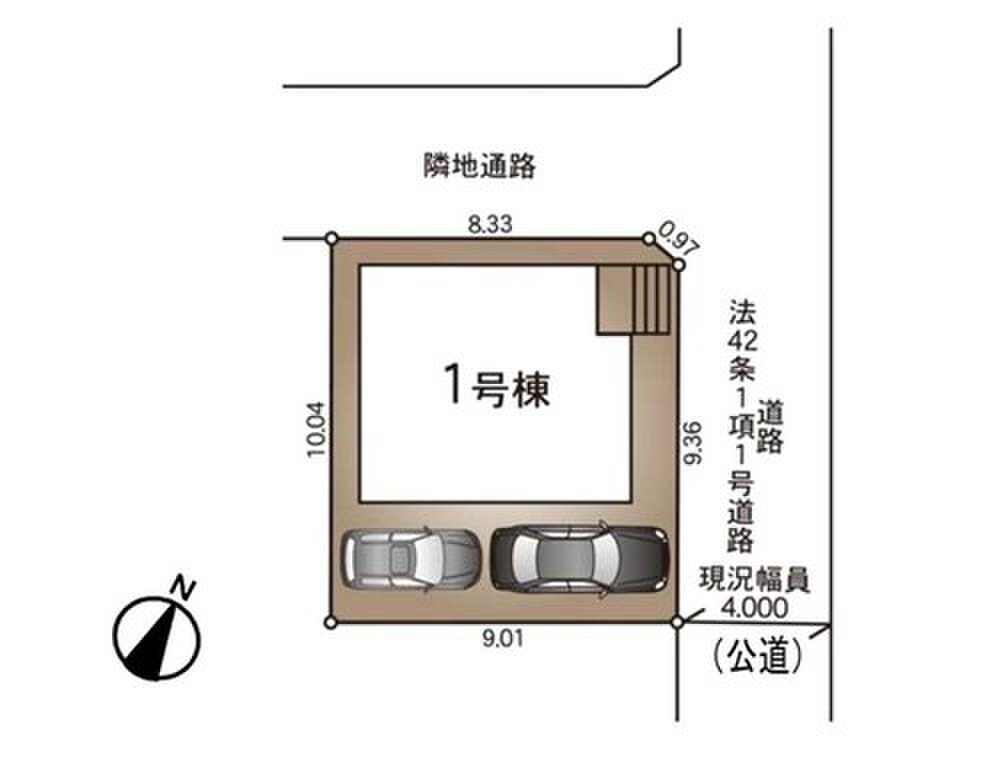 | 駐車場 | 2台 | 道路の幅員 | 道路幅:4m、東側公道 |