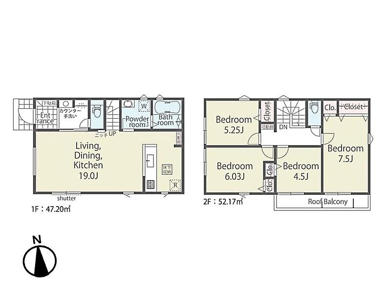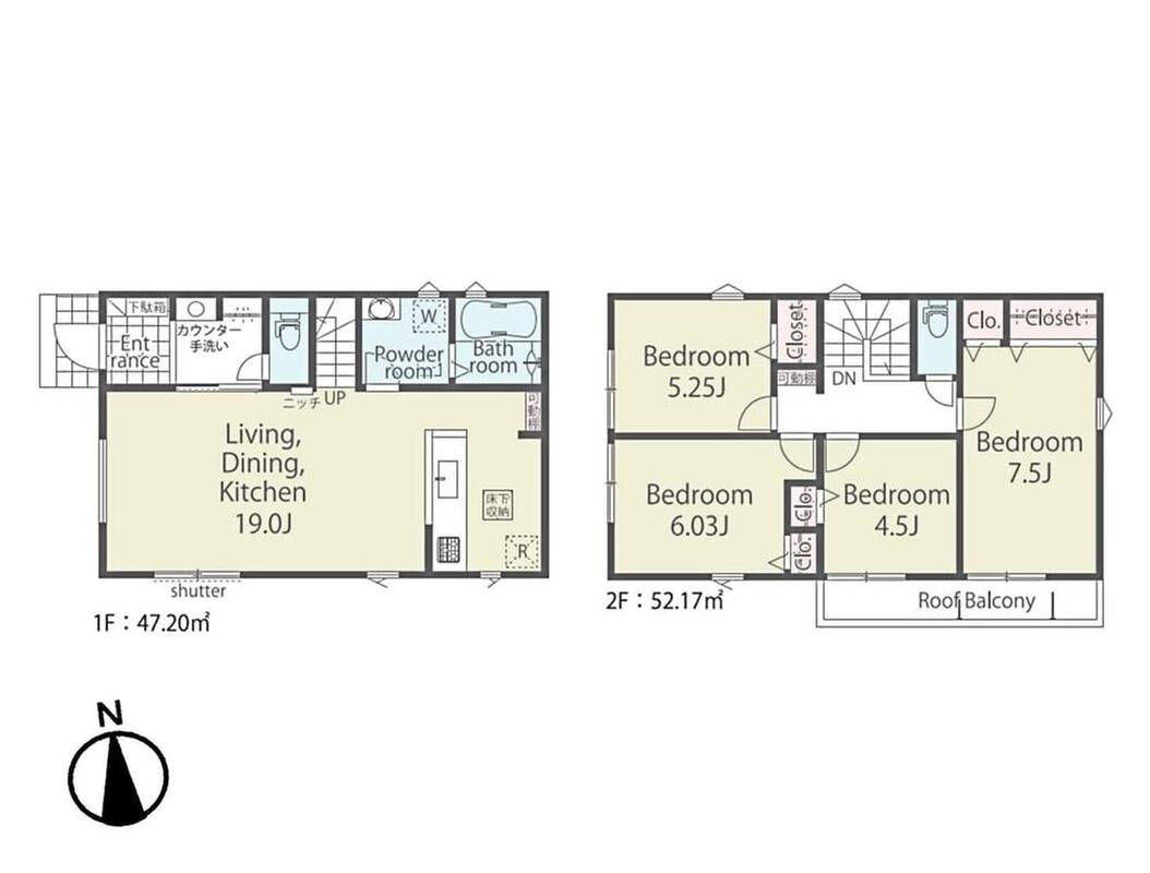 ・2階建4LDK。全居室収納付きでお部屋をすっきり使えます
