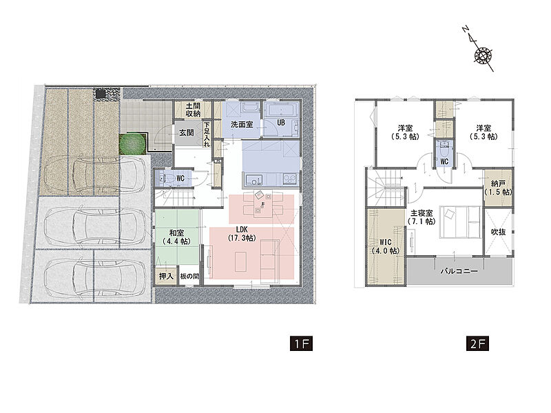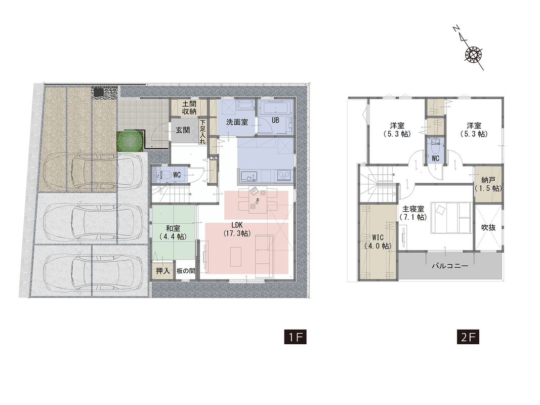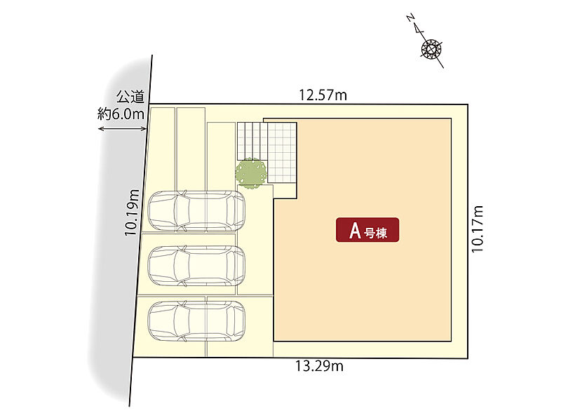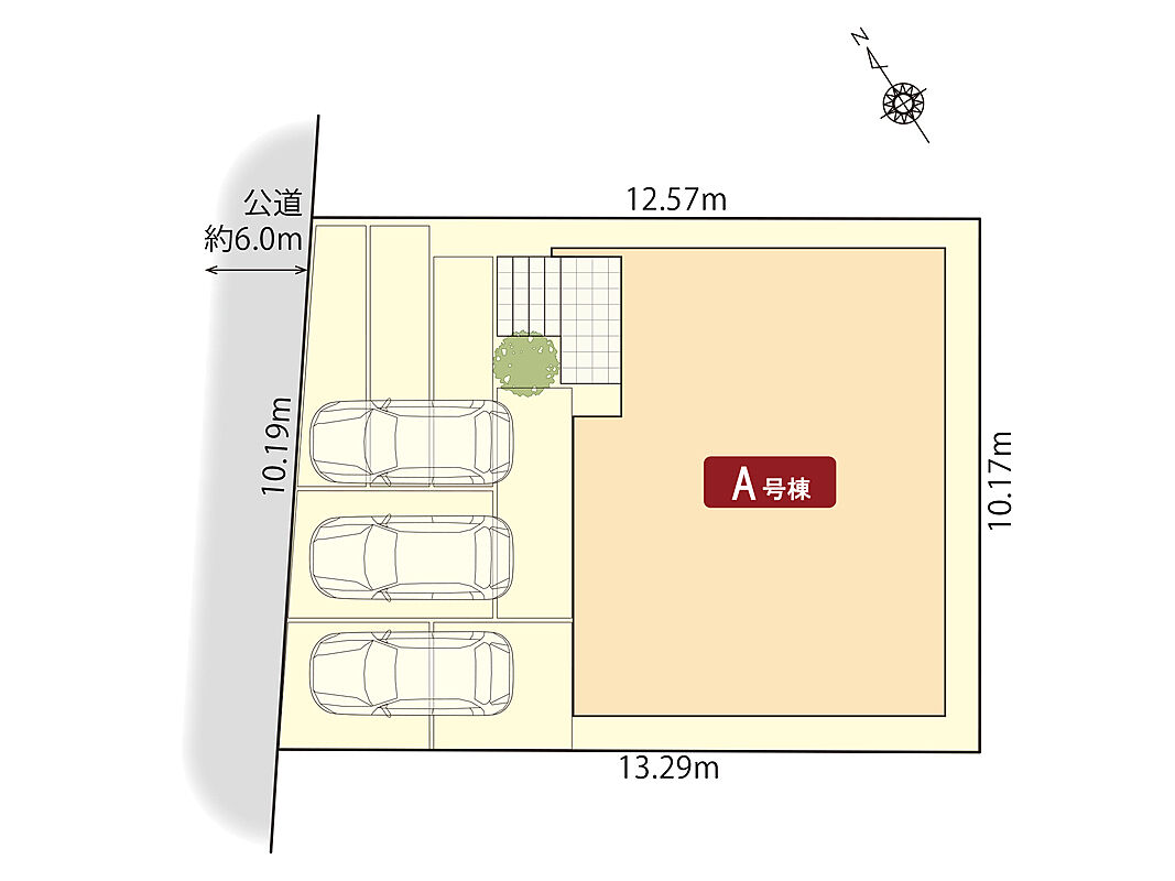 | 駐車場 | 3台 | 道路の幅員 | 北西側6.0m |