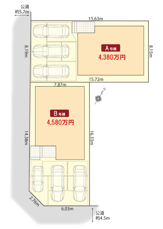 | 販売価格 | 4,380万円(A号棟)、4,580万円(B号棟) | 最多価格帯 | - |