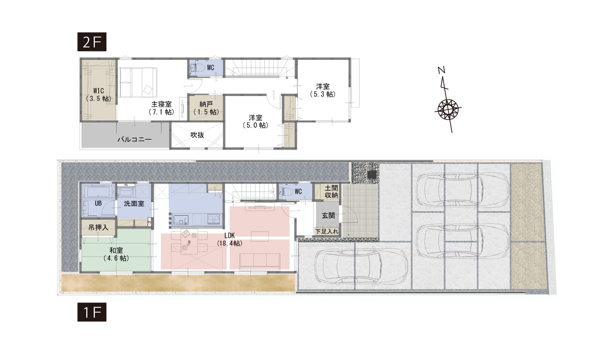 WIC、納戸、土間収納、など生活スタイルに合わせて住空間を確保