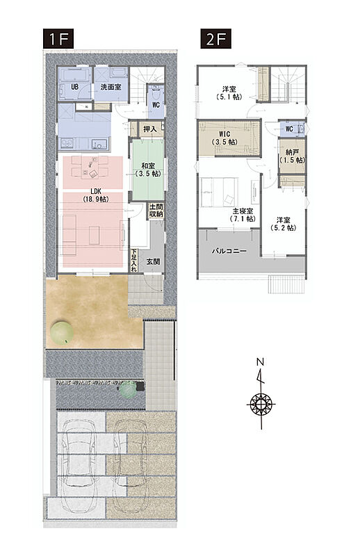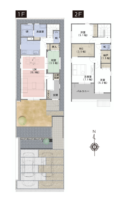 WIC、納戸、土間収納、など生活スタイルに合わせて住空間を確保