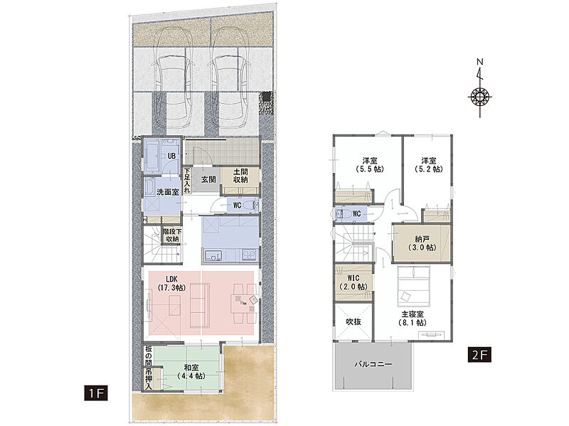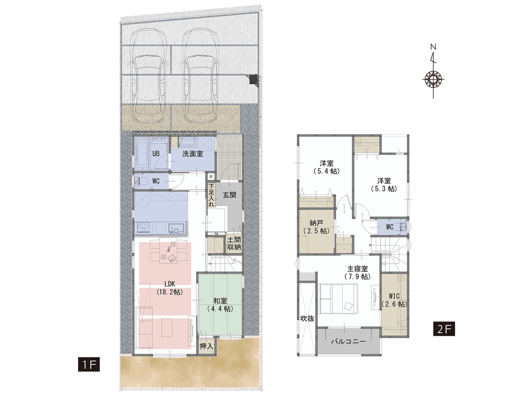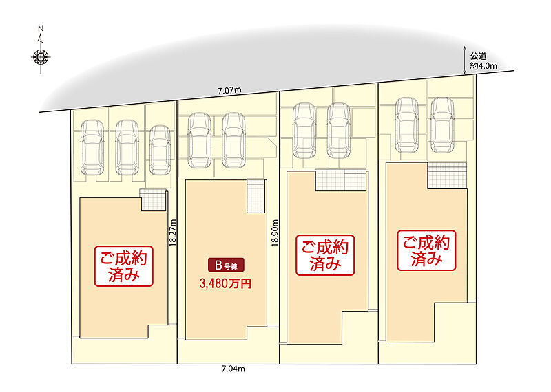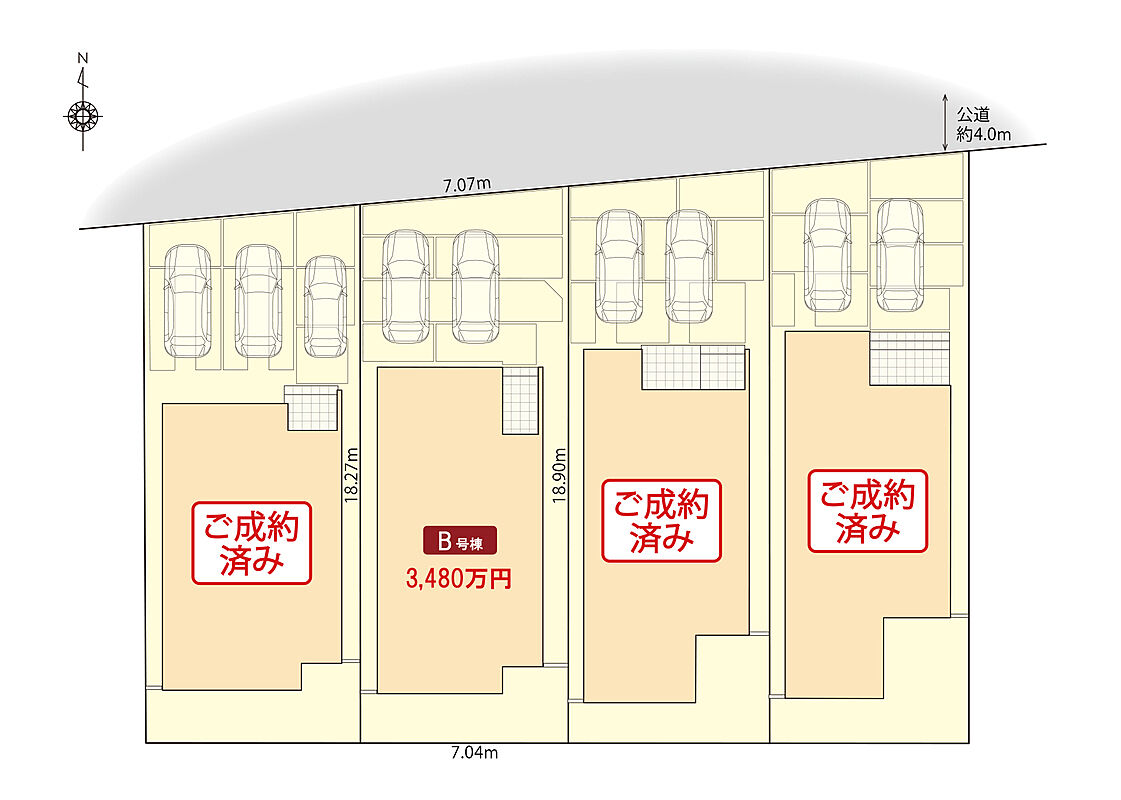 | 駐車場 | 2台 | 道路の幅員 | 北側4.0m |