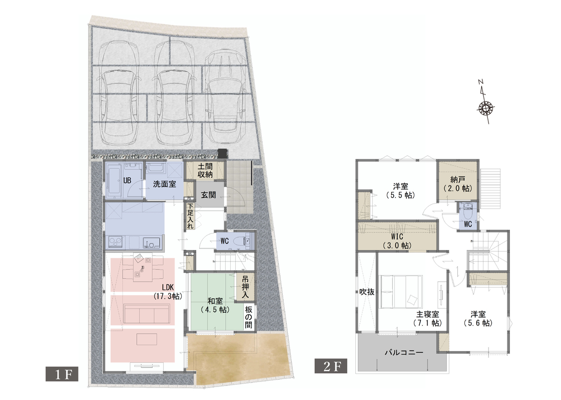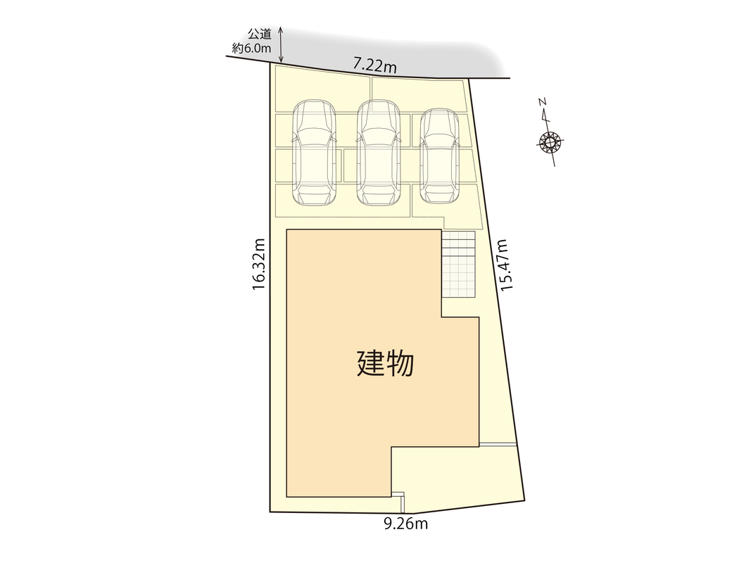 | 駐車場 | 3台(車種による) | 道路の幅員 | 北側6.0m |