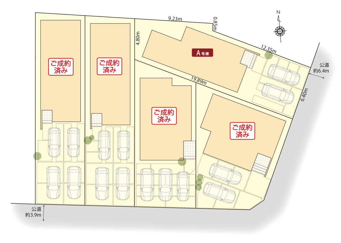 | 建物面積 | 103.73m2(A号棟) | 土地面積 | 129.30m2(A号棟) |