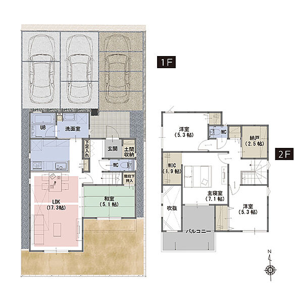 WIC、納戸、土間収納など生活スタイルに合わせて住空間を確保