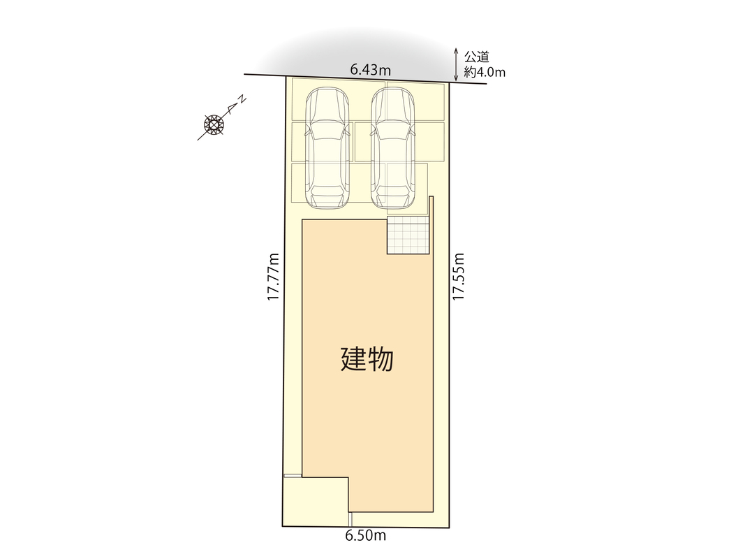 | 駐車場 | 2台 | 道路の幅員 | 北西側4.0m |