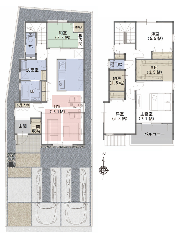 - ※完成予想図やCG合成画像は、門塀・植栽・庭・外観等、実際とは多少異なる場合があります。