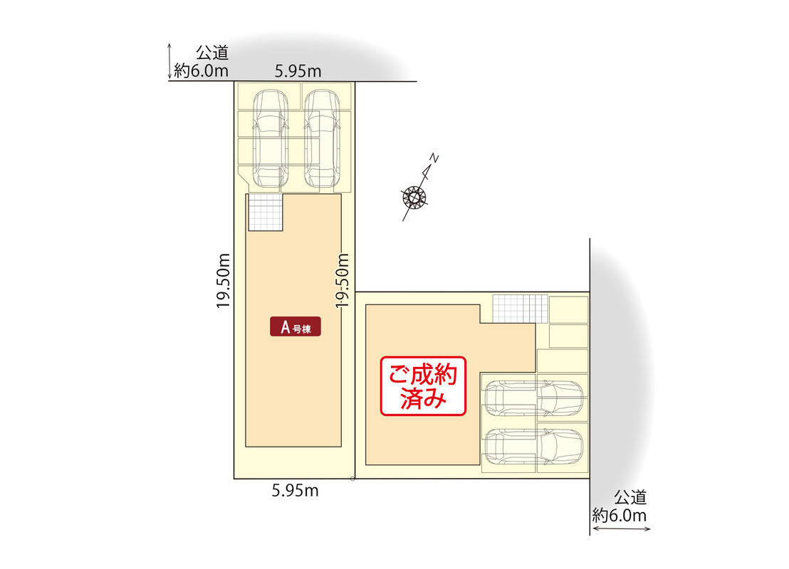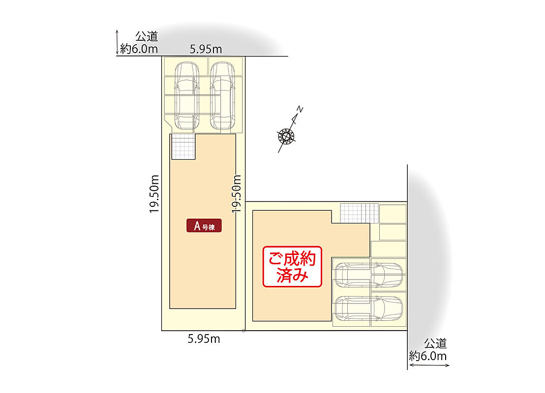 | 駐車場 | 2台 | 道路の幅員 | 北側公道幅員約6.0m、東側公道幅員約6.0m |