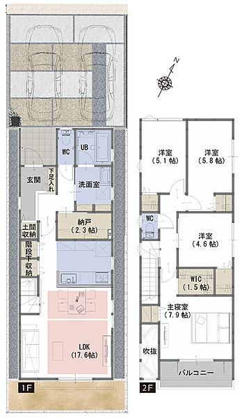 WIC、納戸、土間収納、など生活スタイルに合わせて住空間を確保