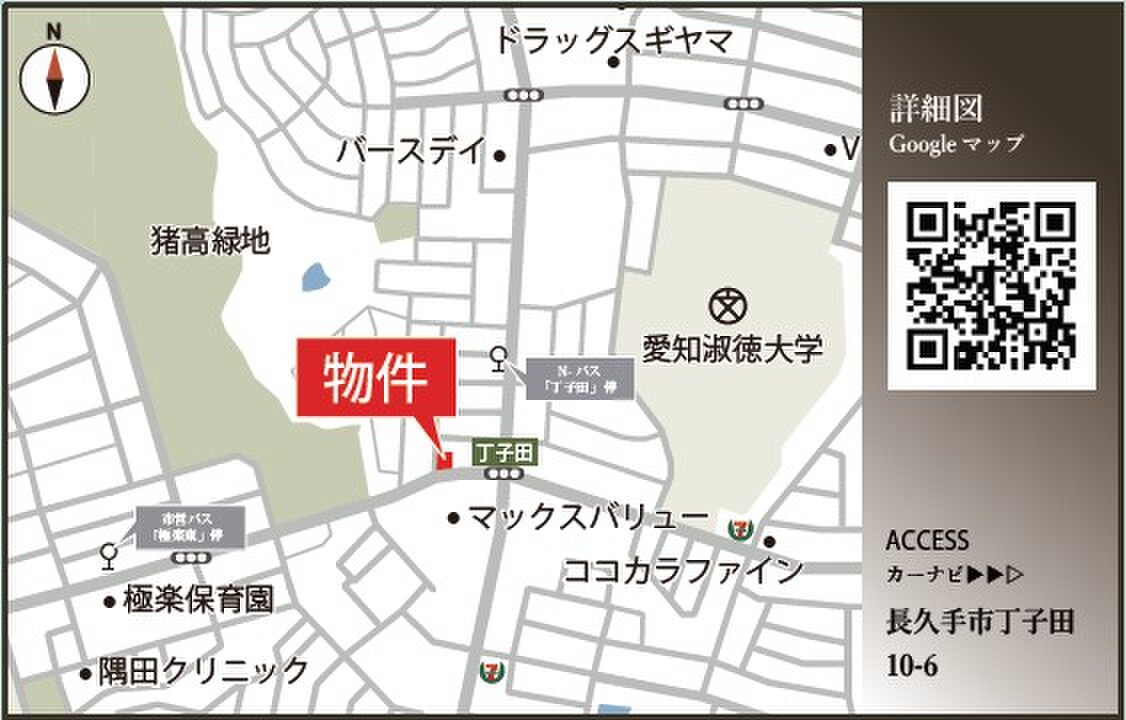愛知高速東部丘陵線「杁ヶ池公園」駅 徒歩33分 名古屋市営東山線「本郷」駅 市バス15分「極楽東」停 徒歩6分 名古屋市営東山線「本郷」駅 徒歩40分 |