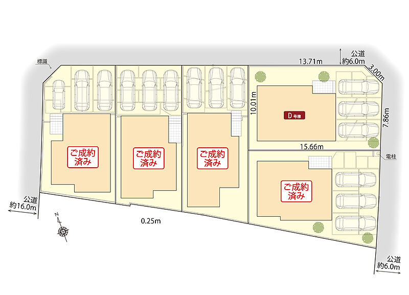 | 駐車場 | - | 道路の幅員 | 北西側公道幅員約16.0m、北東側公道幅員約6.0m、南東側公道幅員約6.0m |