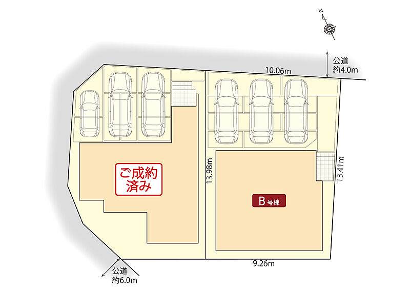 | 駐車場 | 3台 | 道路の幅員 | 北東側4m、北西側6m |