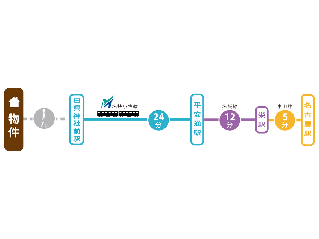 名鉄小牧線「田県神社前」駅 徒歩7分 名鉄小牧線「味岡」駅 徒歩13分 名鉄小牧線「楽田」駅 徒歩27分 |