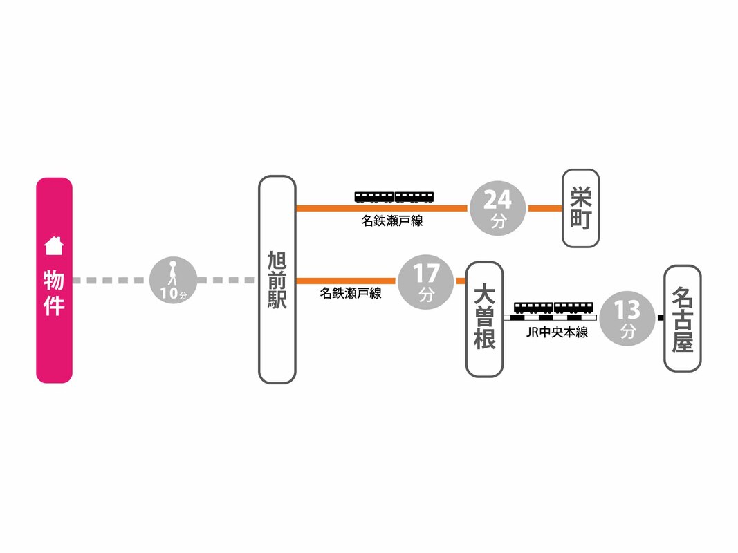 名鉄瀬戸線「旭前」駅 徒歩10分 名鉄瀬戸線「印場」駅 徒歩12分 名鉄瀬戸線「尾張旭」駅 徒歩29分 |