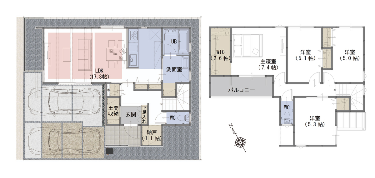 - ※完成予想図やCG合成画像は、門塀・植栽・庭・外観等、実際とは多少異なる場合があります。