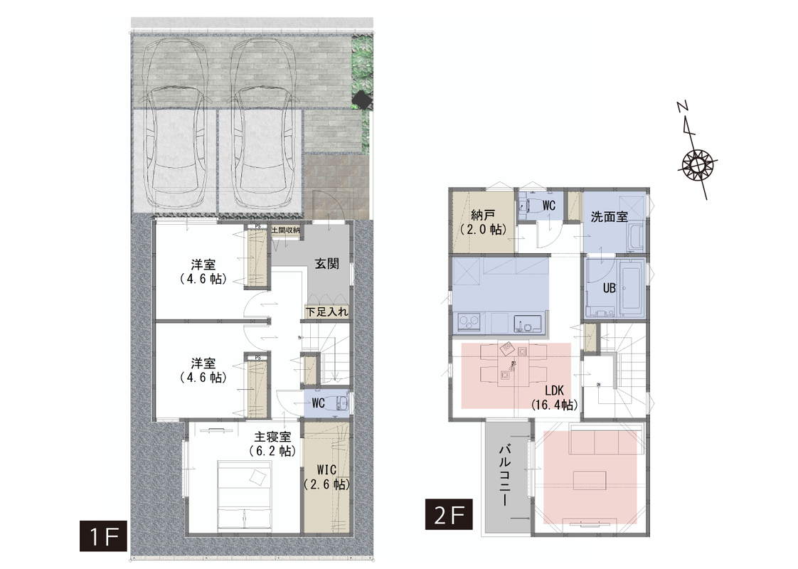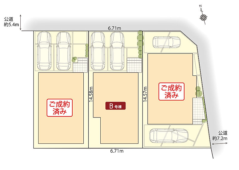| 駐車場 | 2台 | 道路の幅員 | 北側5.4m |
