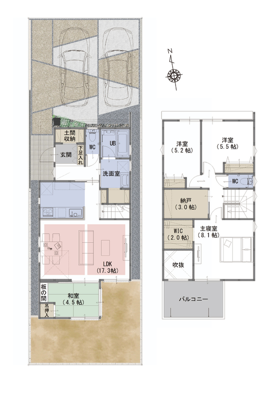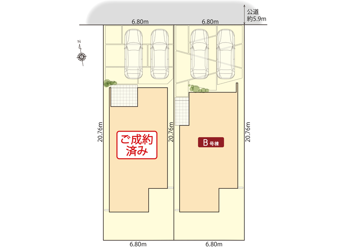 | 駐車場 | 2台 | 道路の幅員 | 北側5.9m |